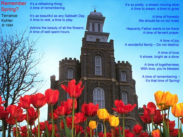 [This poem was written by Terrance Kohler, long before he met Elder & Sister Burt]